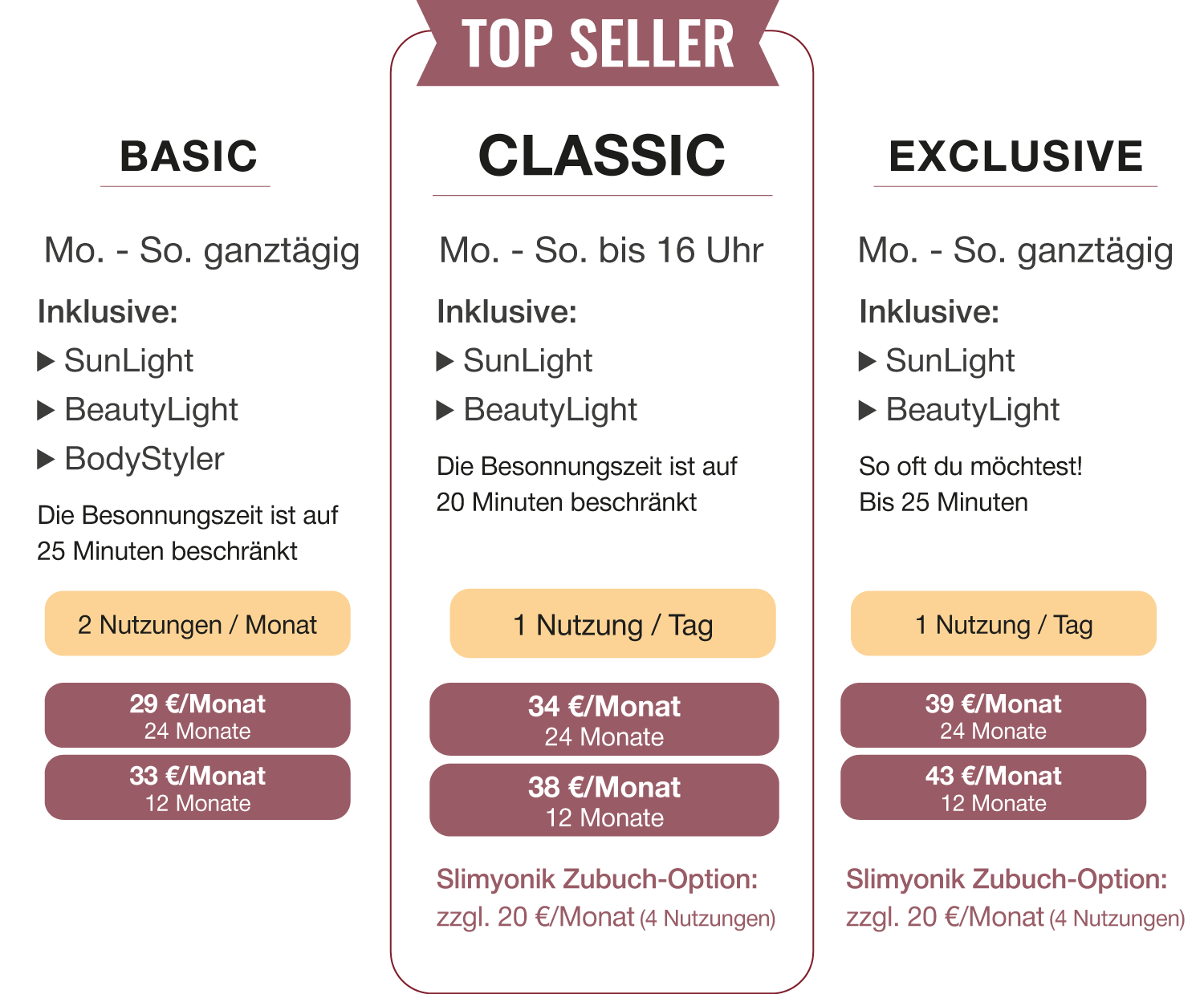 Entdecke, welcher Sun & Beauty Clubtarif ganz individuell zu Deinen Bedürfnissen passt.